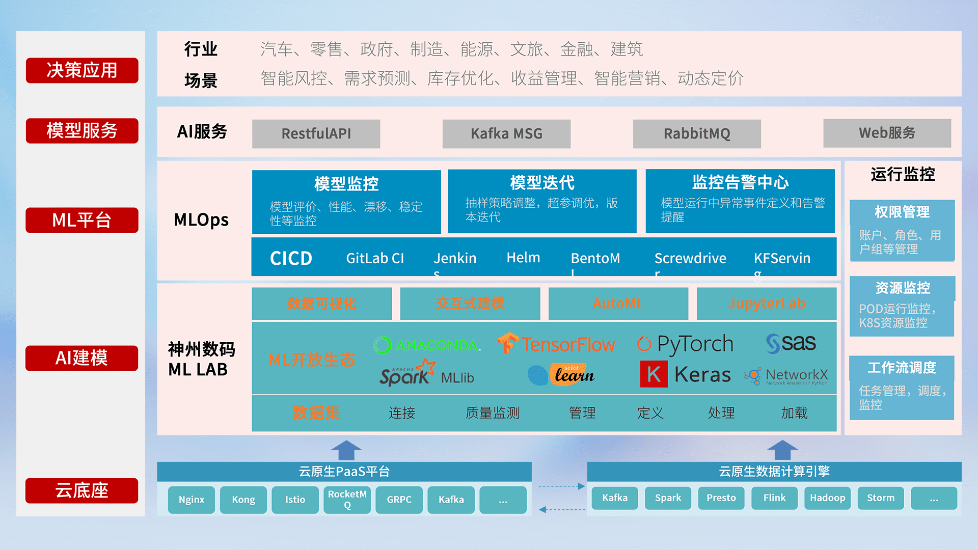 数据+模型双引擎驱动,,,,面向智能服务场景,,,快速灵活利用AI技术,,,,支持业务决策,,,,助力企业智能化转型破局。。